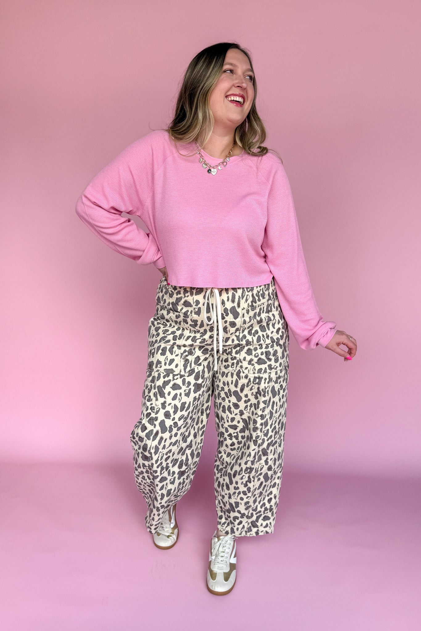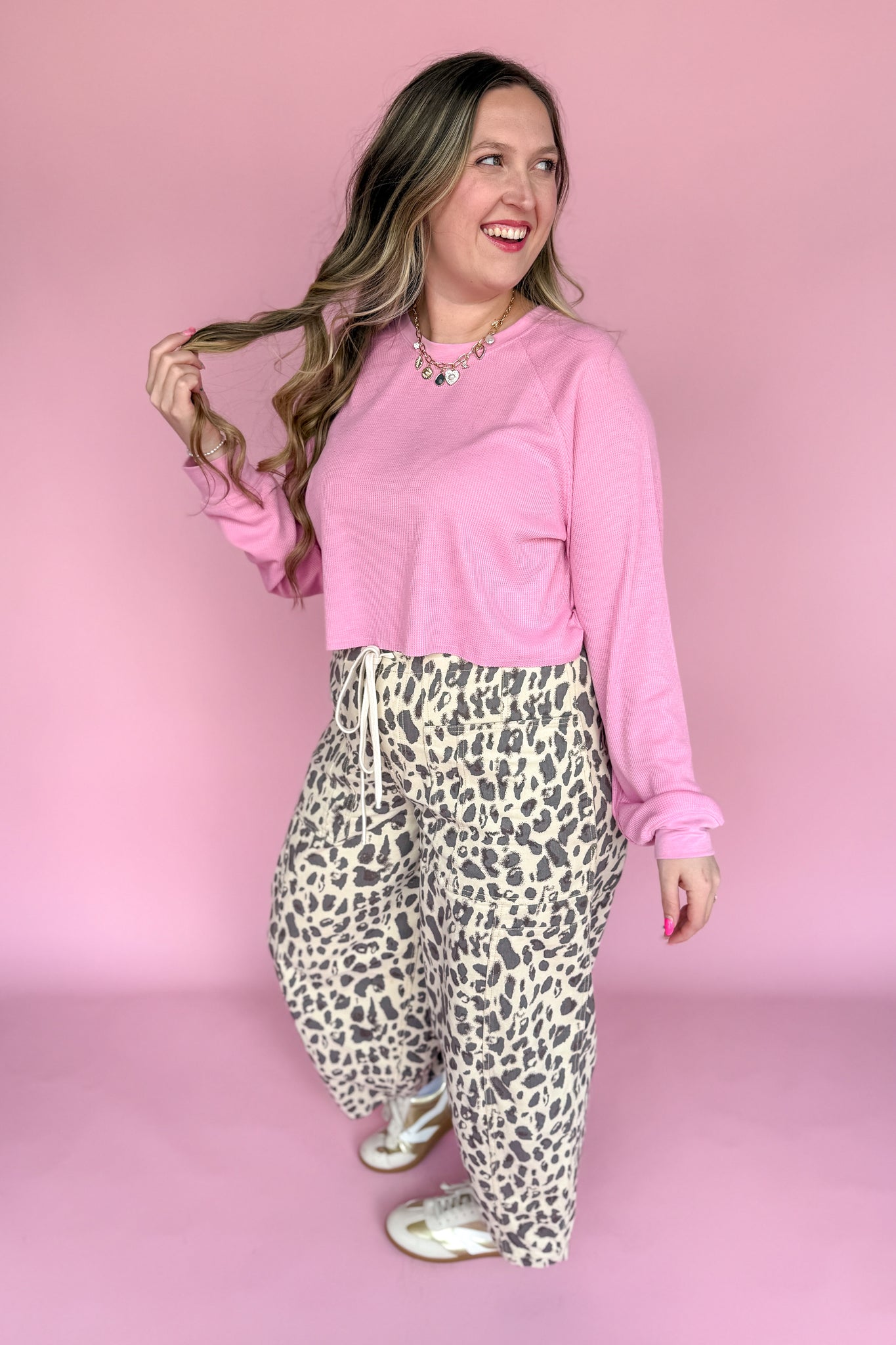 Add a pop of playful charm to your wardrobe with the Alana Top. This rose pink, lightweight waffle knit features a cozy long sleeve and a flattering round neck. Its slightly cropped cut adds a fun, flirty twist perfect for layering or pairing with your favorite high-waisted jeans. Comfortable and cute, it’s your new go-to for effortless style.