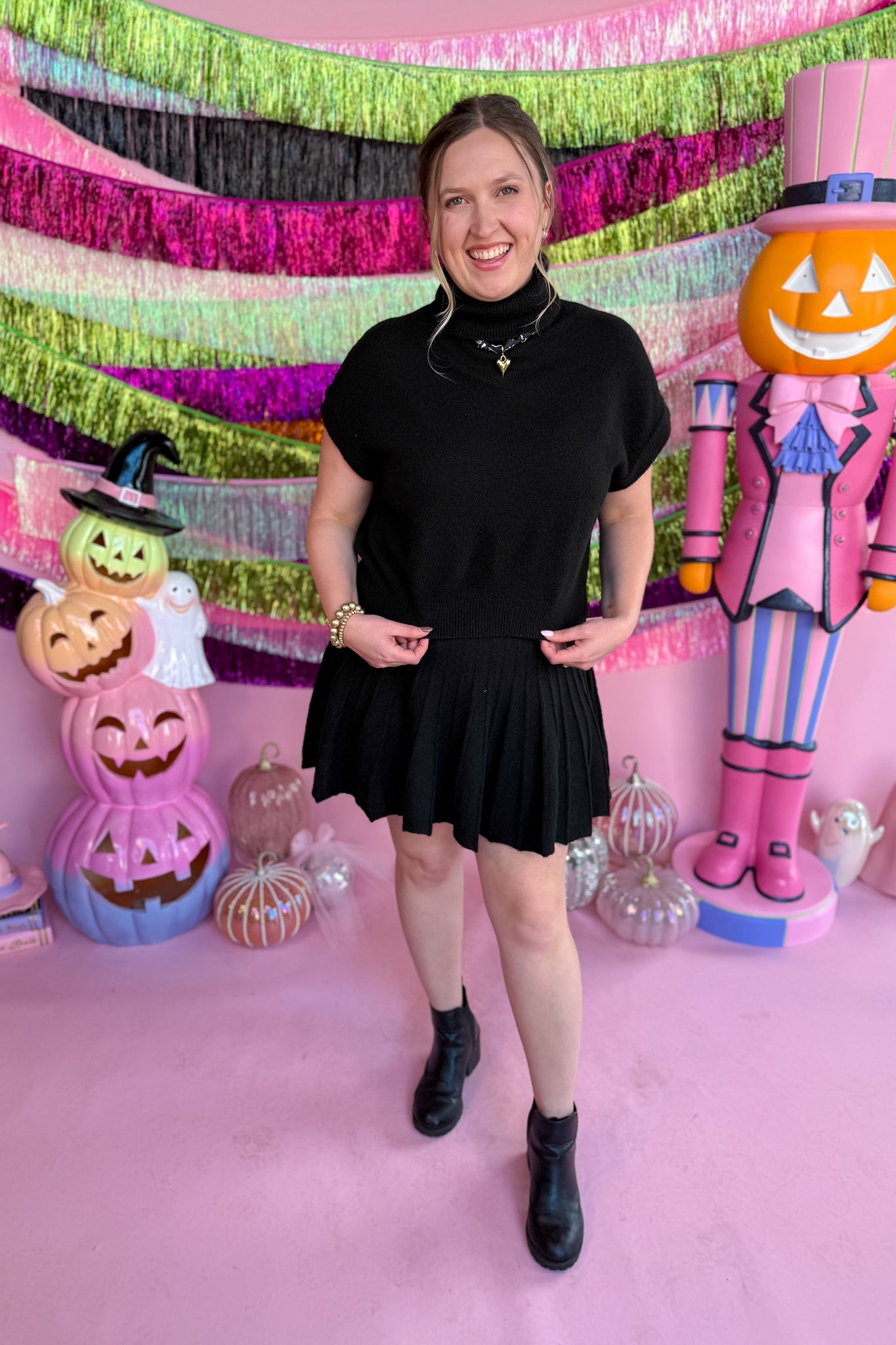 Elevate your wardrobe with the Roslyn Sweater Top, designed for a snug, comfortable fit and featuring structured cap sleeves for a modern edge. This versatile piece pairs beautifully with the separately sold pleated skirt or your favorite jeans and trousers, making it perfect for day-to-night looks. Whether layering under a blazer or styling with boots, the Roslyn Sweater Top offers effortless sophistication and contemporary style.
