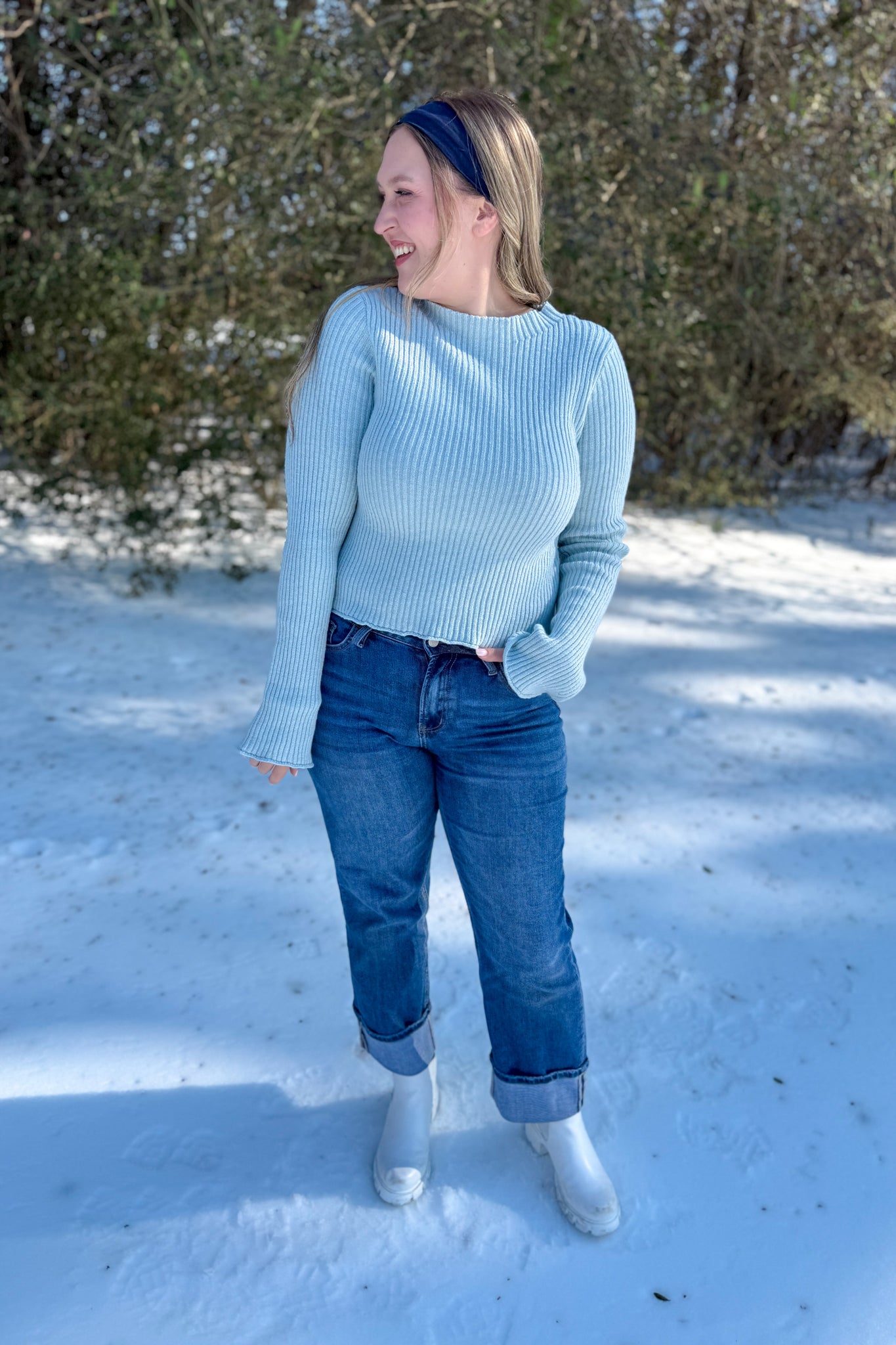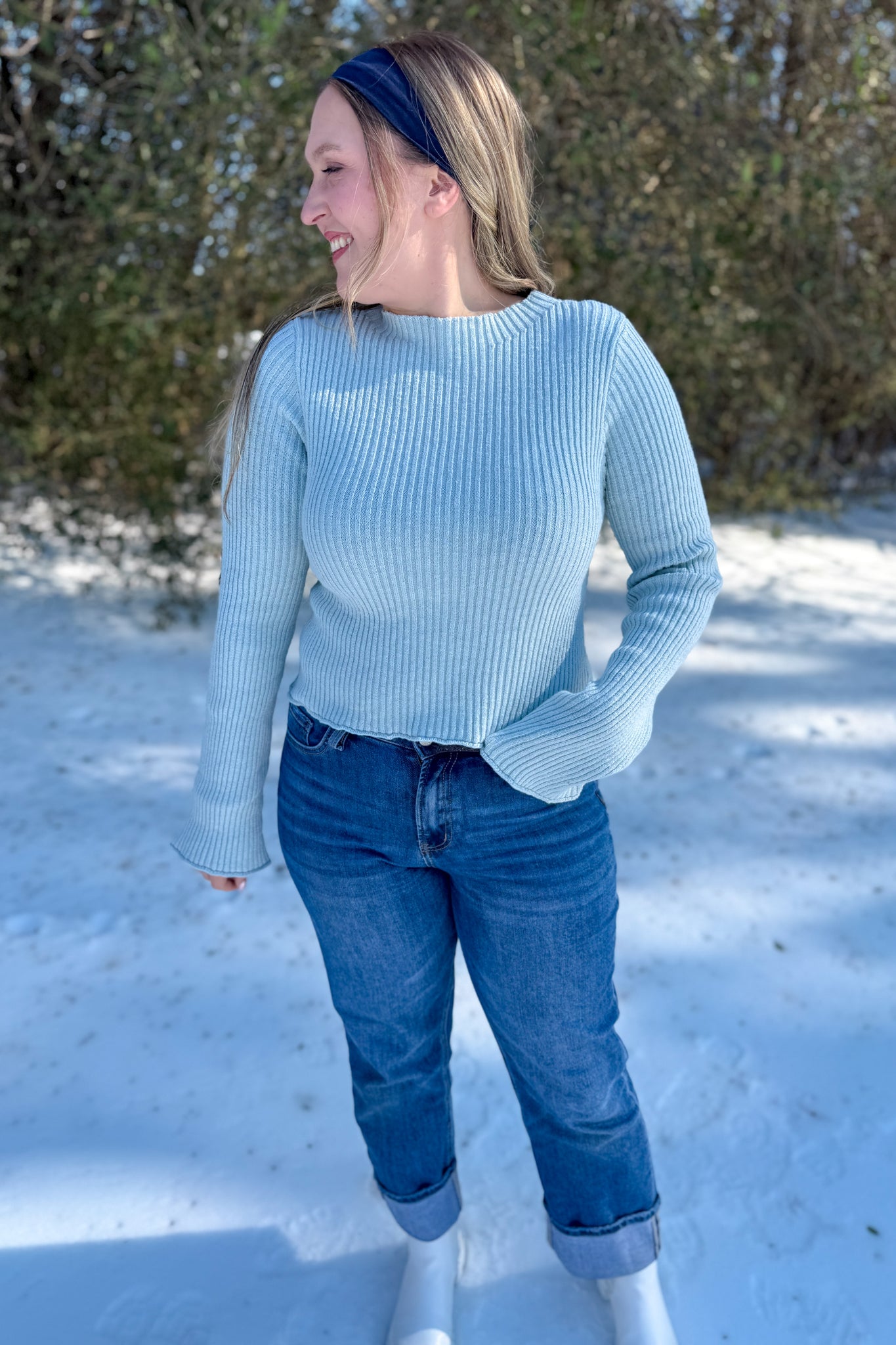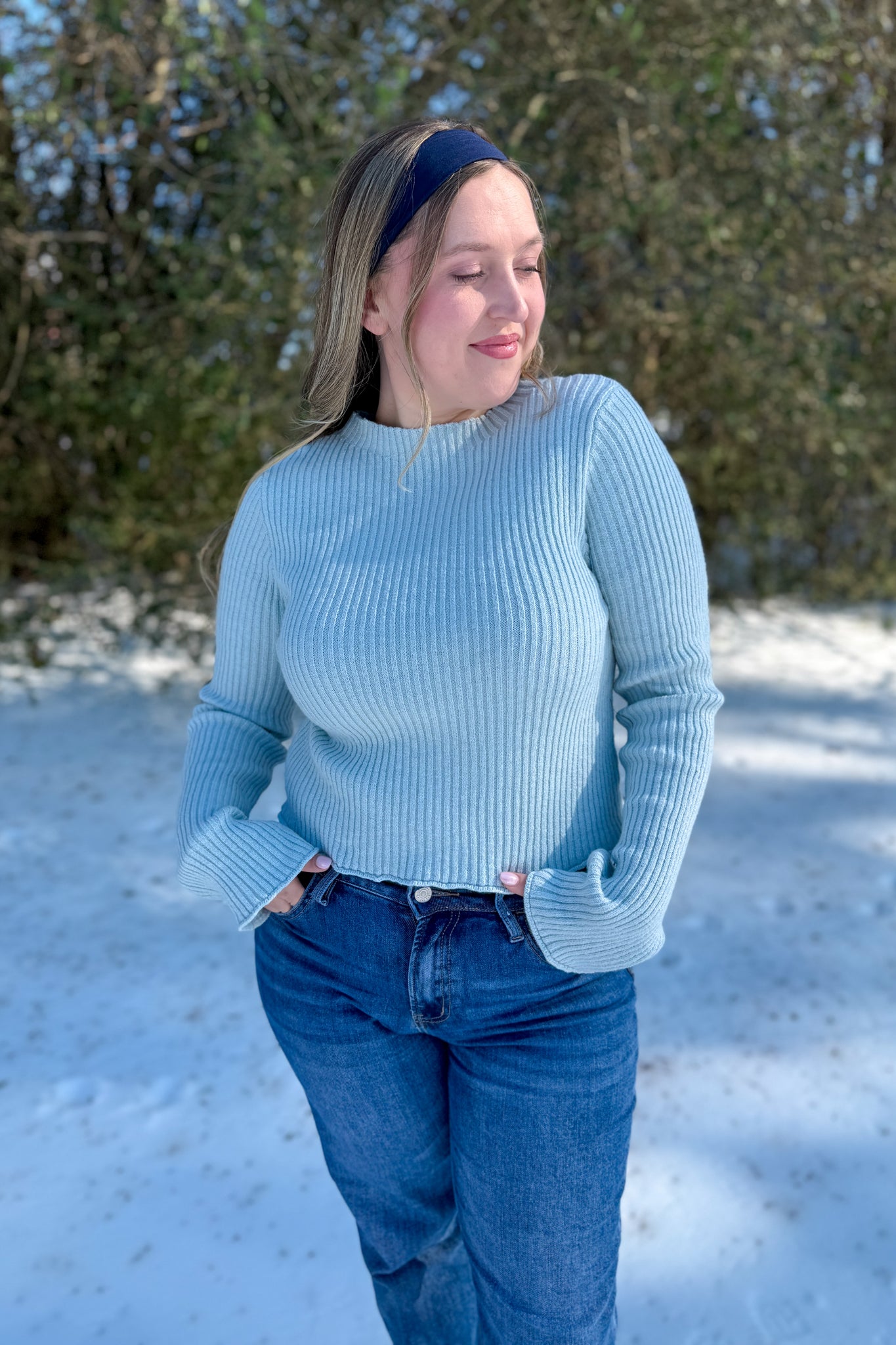 This ribbed sweater top flaunts a sleek mock neck and elegant extended cuffs, ideal for elevating a casual ensemble. The fitted silhouette enhances its versatility, making it perfect for both under a blazer and solo wear. Tailored for comfort and style, it's a splendid piece for transitional seasons or cool evenings. Pair it with soft fabrics or crisp materials for textural contrast in your everyday or workday outfits.