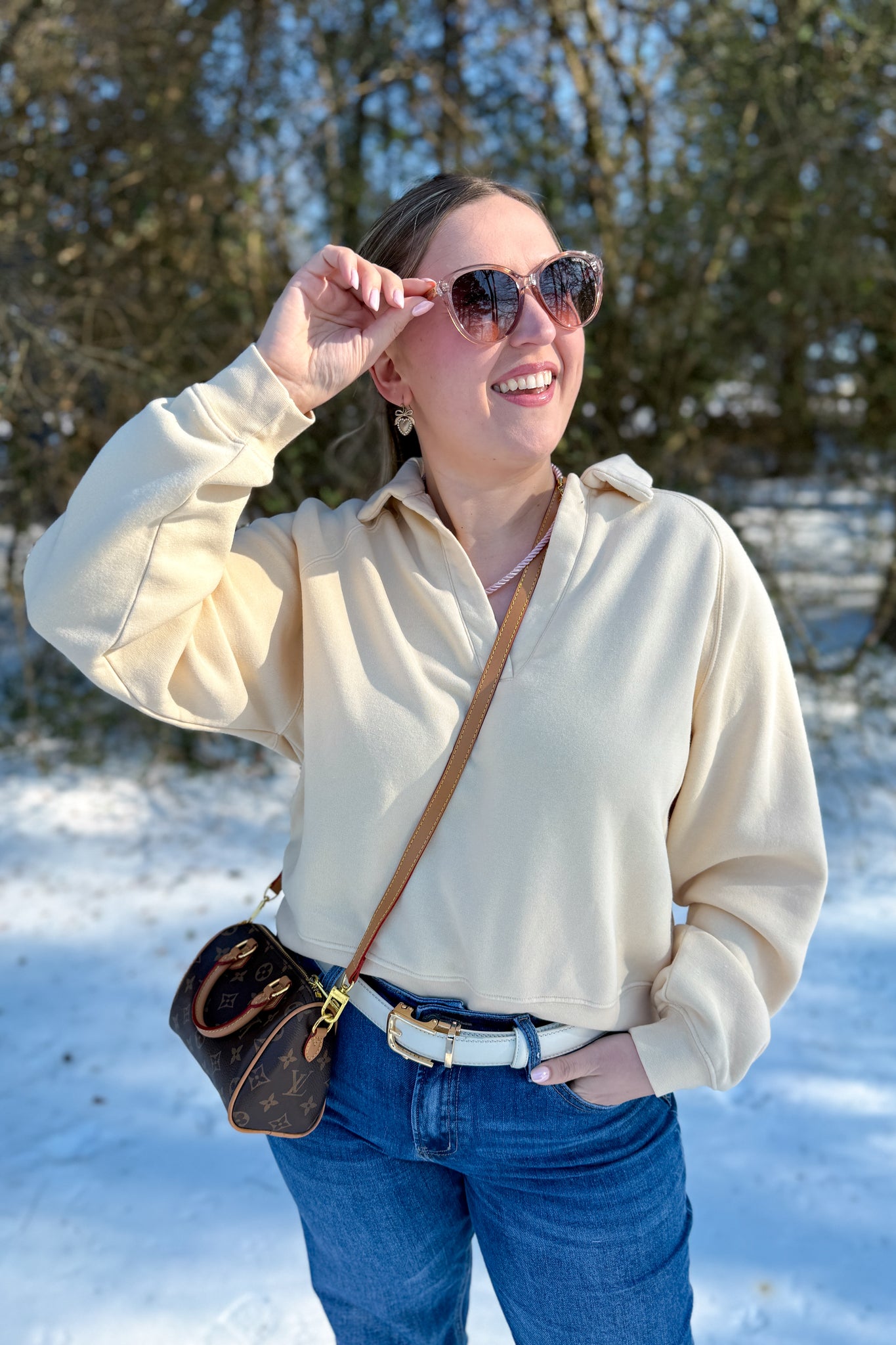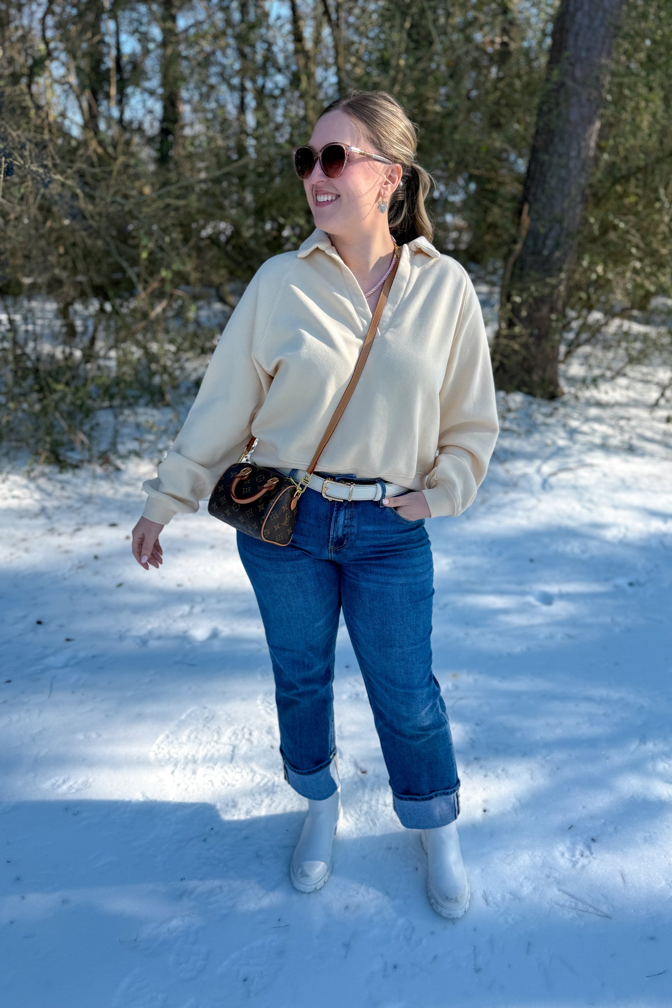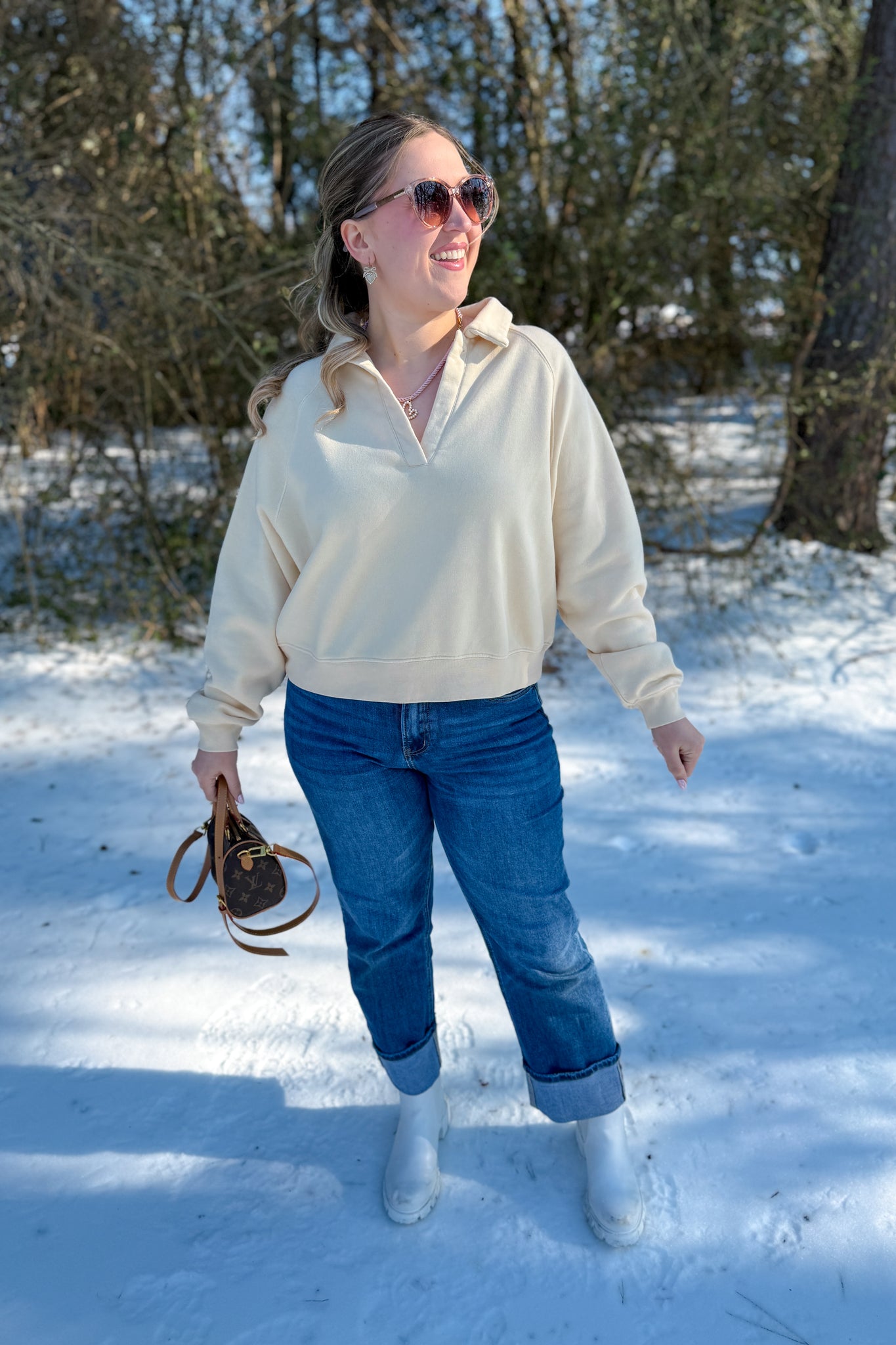 Cream collared v neck pullover sweater. Perfect throw and go for those busy moms who want to look put together while being comfy cozy!